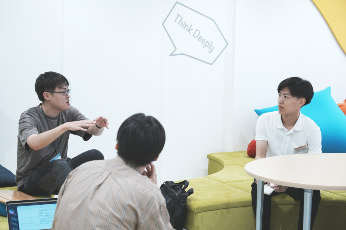 そのため、まずはメンター+先輩社員2名で自分たちの仕事内容や使っている技術、関わっているプロジェクトのことなどをしっかりと理解いただく時間を取りました!